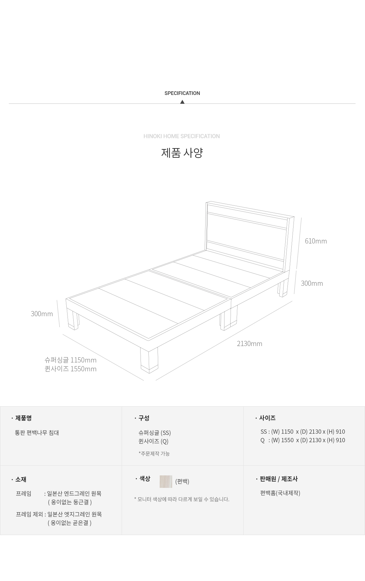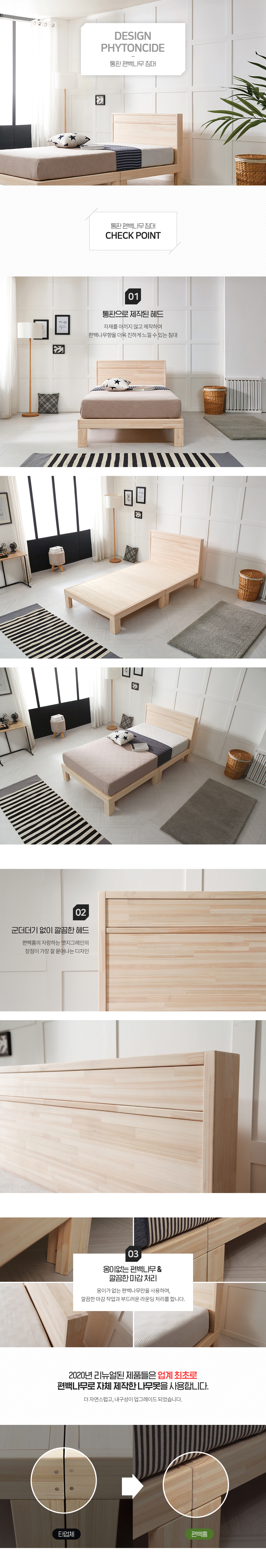 편백홈이 자랑하는 엣지그레인의 아름다움이 가장 잘 드러나는 침대로 자재를 아끼지 않아 더욱 진한 향과, 어디에나 잘 어울리는 심플한 디자인, 통판형 헤드로 청소까지 손쉽게 가능하답니다.