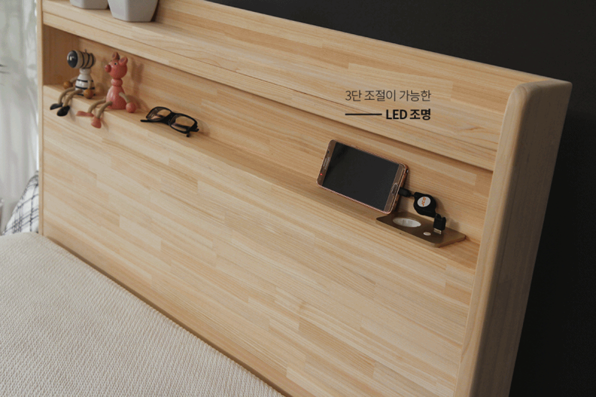 콘센트가 포함되어 충전 기능으로 노트북 등 전자기기를 사용하기에도 좋으며, 수납 기능까지 포함 되어 아이가 좋아하는 인형도, 잠들기 전까지 쓰고 있던 안경도 간편하게 수납 하세요.