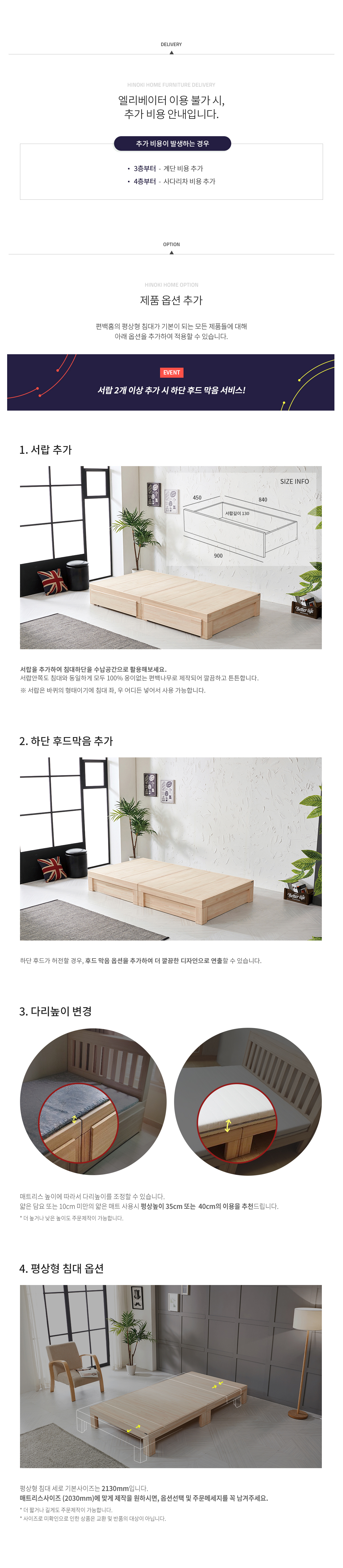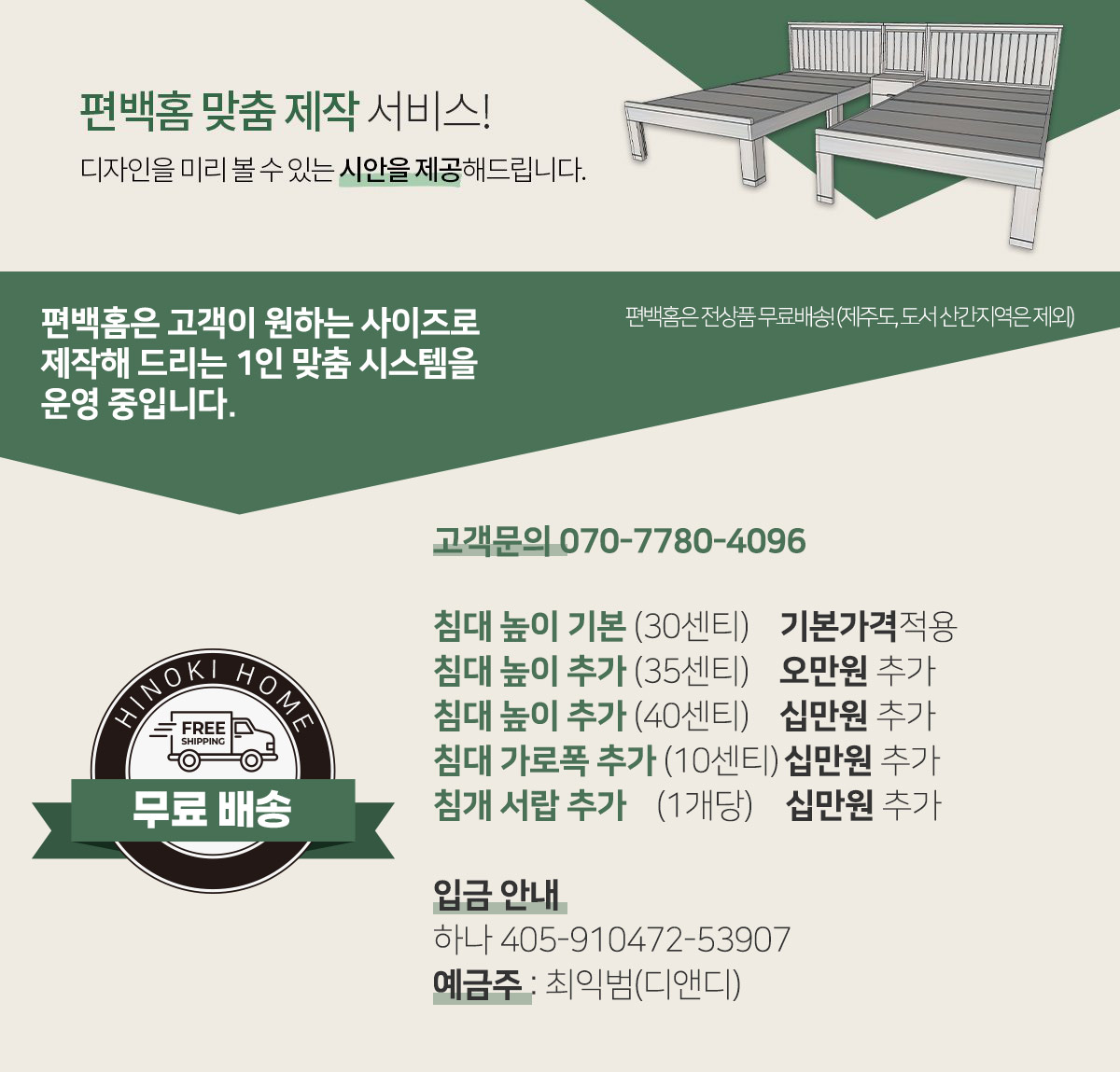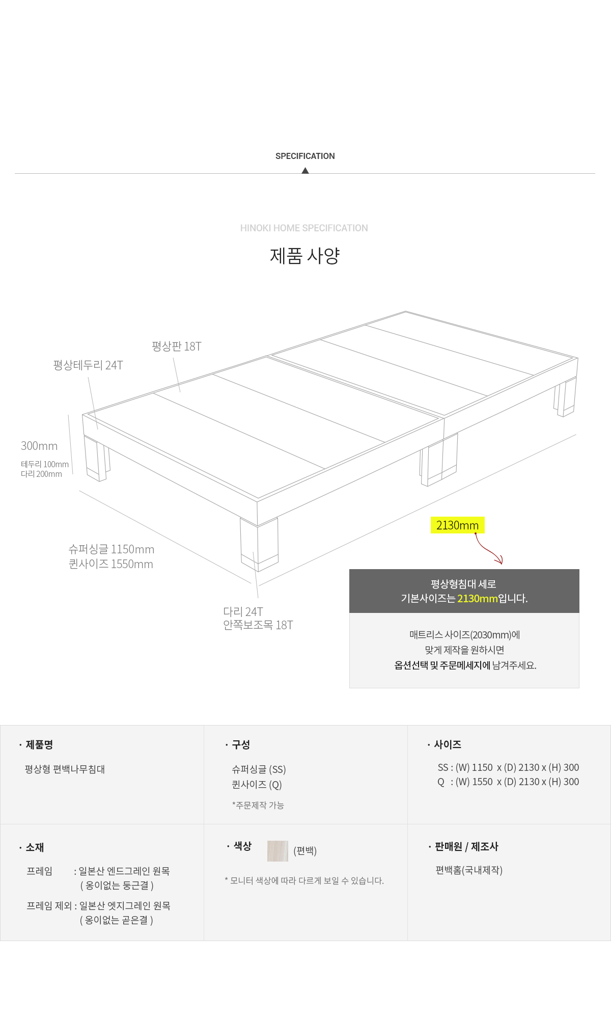편백홈의 모든 침대의 평상은 기본 평상형 침대를 사용합니다.