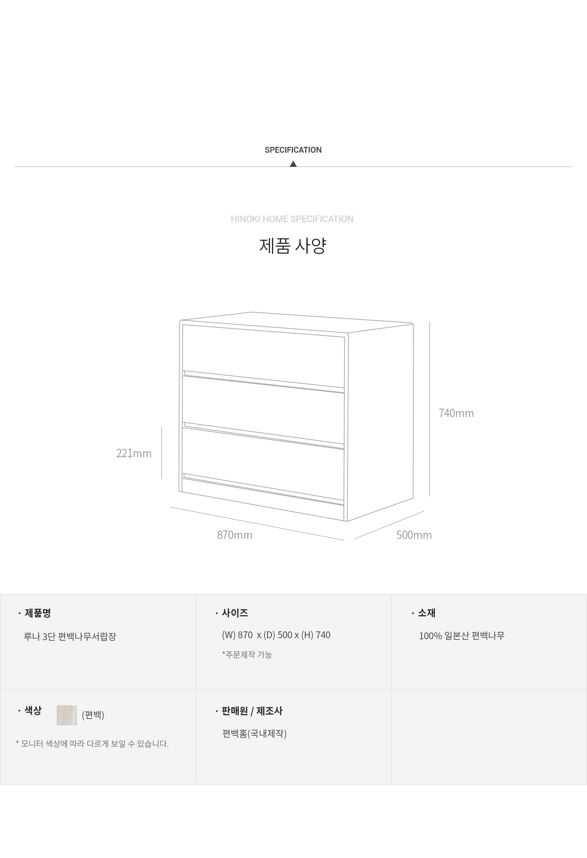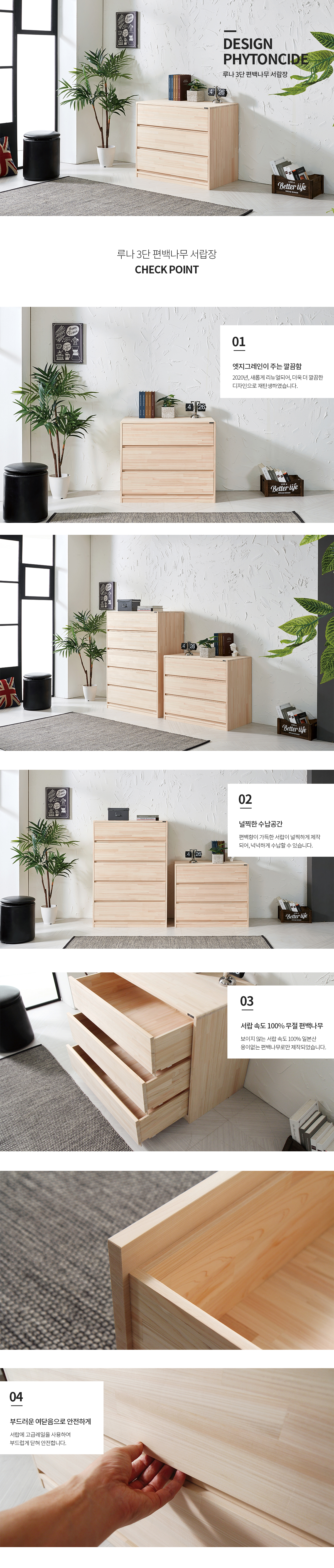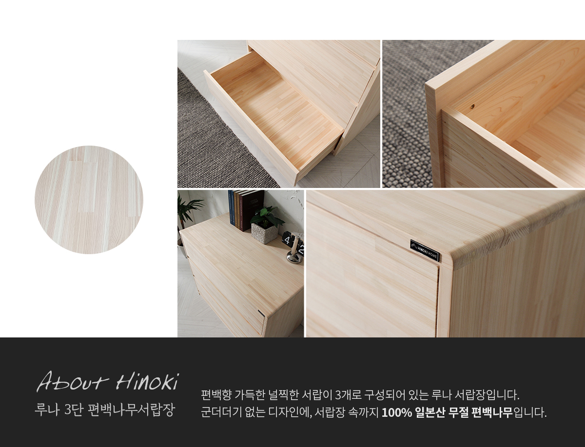 고급 제품답게 좋은 편백나무를 아낌없이 사용하여 제작되었고, 서랍 역시 모두 편백나무로만 제작 되었습니다.