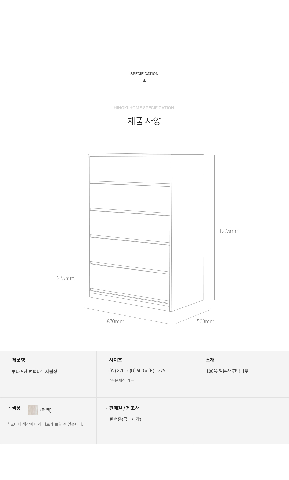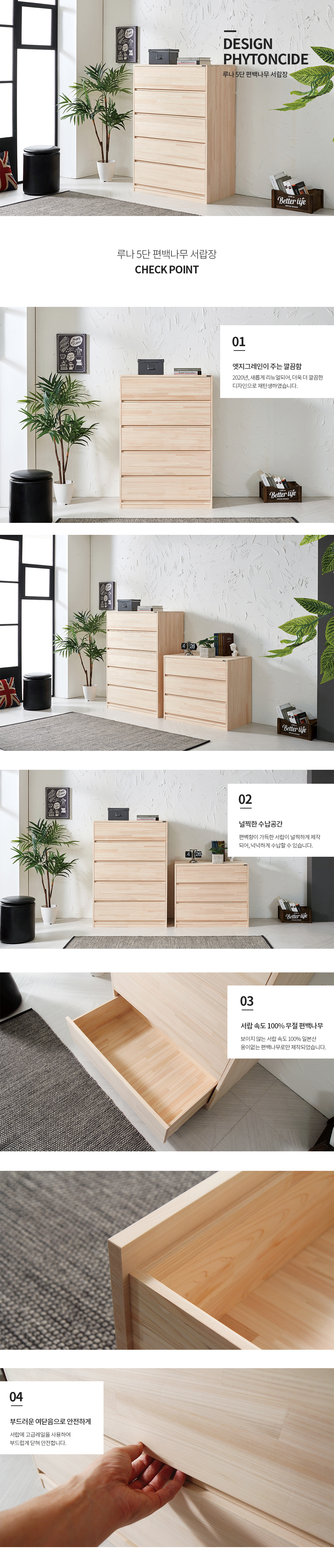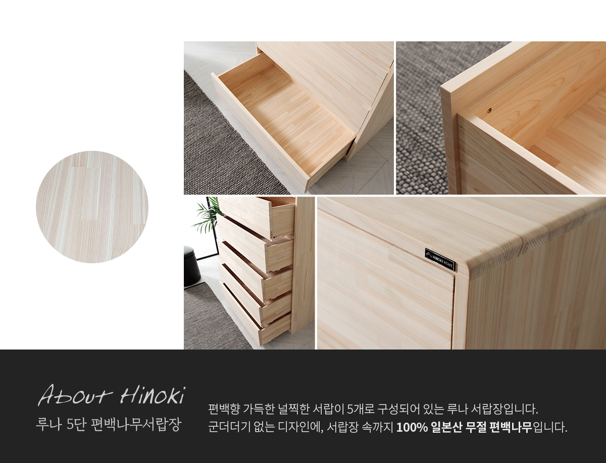 고급 제품답게 좋은 편백나무를 아낌없이 사용하여 제작되었고, 서랍 역시 모두 편백나무로만 제작 되었습니다.