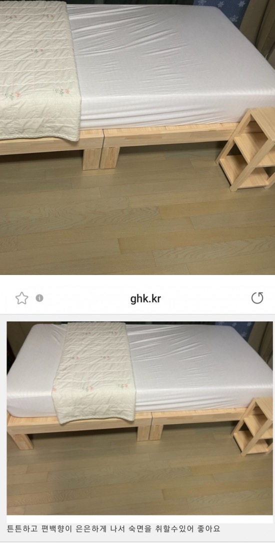 [이*희] 고객님 이사하면서 침대 알아보다 요즘 침대 트윈으로 많이들 사용한다해서 편백으로 맞춤 제작했습니다. 제작하면서 사장님과 소통하면서 사이즈나 저희 부부의 라이프 스타일까지 고려해,,꼼꼼하게 설명해주셨고 .. 아이들까지 생각해 마감도 안전하게 제작해주셨습니다 덕분에 안방이 호텔이네요. ㅋㅋ 너무 감사합니다 벌써 아이들 침대도...
